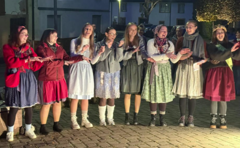 Nachdem der Kirbbaum am Pfarrheim aufgestellt war, verfolgten rund 100 Zuschauerinnen und Zuschauer aller Altersgruppen am Dorfplatz gespannt, wie sich die fünf Teilnehmerinnen in vier anspruchsvollen Disziplinen maßen. Die Stimmung war fröhlich und ausgelassen – viele Gäste erschienen im Dirndl oder mit Kittelschürze, ganz im Zeichen des Faschings.